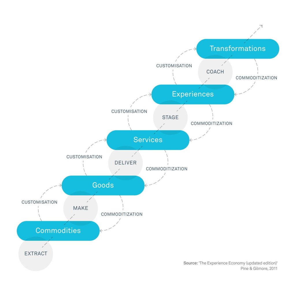 Pine ve Gilmore (1990), ekonominin evrimini Sanayi Devrimi ile birlikte ortaya çıkan üretim ekonomisi ve onu takiben hizmet ekonomisinin ardından deneyim ekonomisinin ortaya çıkmasıyla gerçekleştiğinin altını çizer. Endüstri Devrimi’yle birlikte, üretim ve verimlilik ön planda olmuştur. Ürünlerin temel işlevleri ve düşük maliyetleri tüketiciler için daha önemlidir. Üretimden hizmetlere geçişle birlikte, tüketicilerin ihtiyaçları çeşitlenmiş ve hizmetlerin kalitesi önem kazanmaya başlamıştır. Ancak bu dönemde bile deneyim, hizmetin bir yan ürünü olarak görülmekteydi. Örneğin; bir restoranda yemek yemek, sadece açlığı gidermek değil, aynı zamanda sosyalleşmek için bir vesileydi. Hizmet ekonomisinde ise üretimde standartlaşmanın yanı sıra hizmetlerin önemi artmıştır. Müşteri memnuniyeti ve hizmet kalitesi bu dönemde daha fazla vurgulanmıştır. Deneyim ekonomisinde ise hizmet ekonomisinin bir adım ötesine geçilerek, tüketicilerin artık sadece ürün veya hizmetlerin kendilerine değil, bu ürün veya hizmetleri kullanırken yaşadıkları toplam deneyime değer verdiklerini ortaya çıkmıştır.
